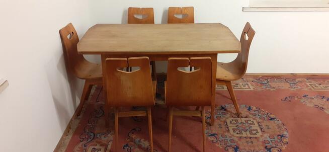 Rajmund Teofil Hałas (Bydgoska Fabryka Mebli), typ: 1329. - Stół (130 x 73 cm) - Sześć krzeseł (85 x 46 x 58 ...